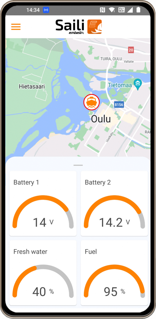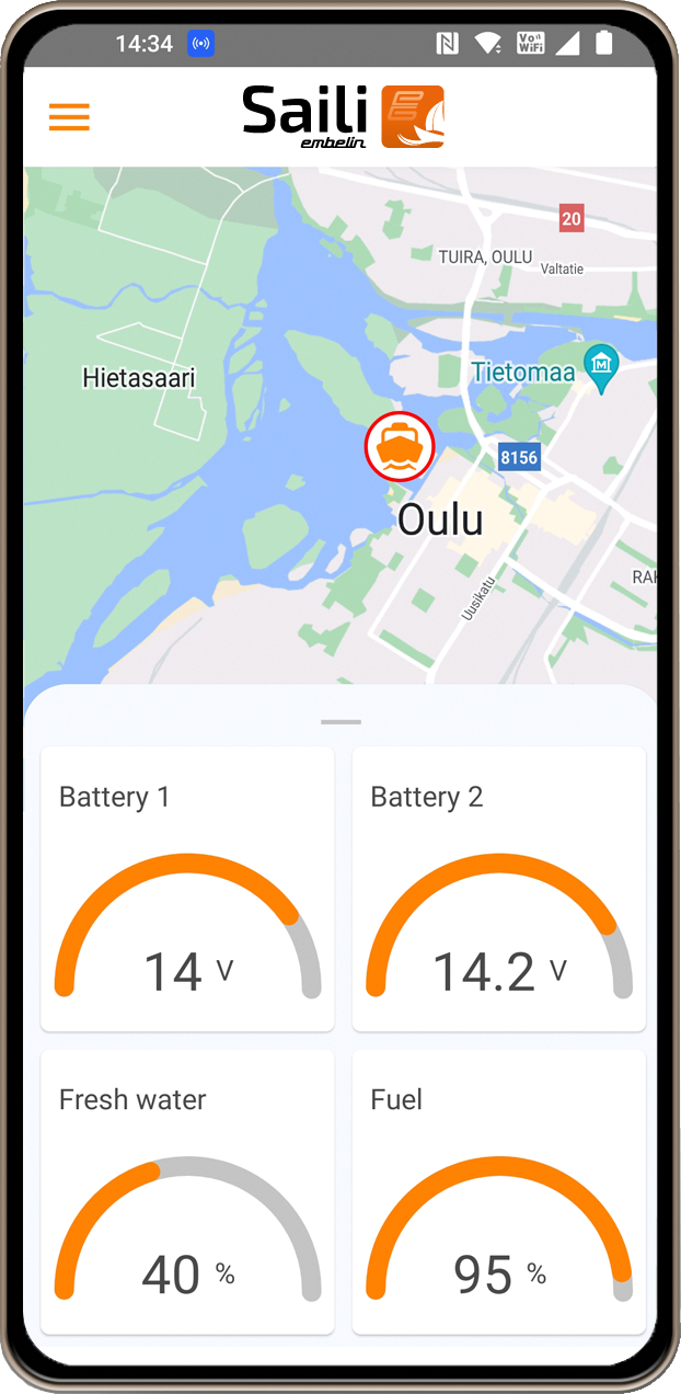 Saili is a comprehensive remote monitoring and control system for boats. The system consists of a control unit for marine vessel and it can be used with a mobile application or web browser. Saili is designed for easy installation and easy use. It contains all essential functions needed by boaters – and more!